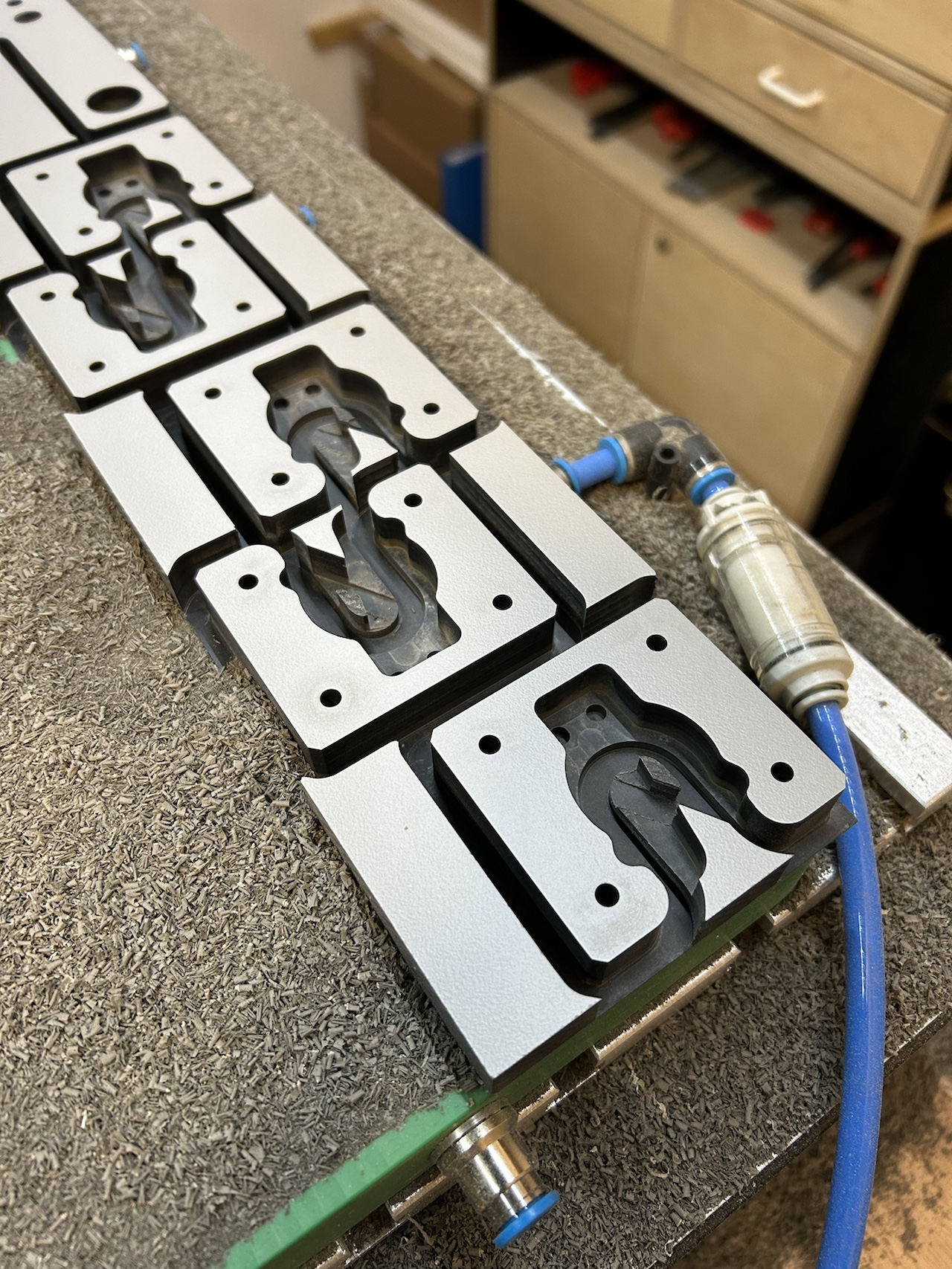 Des petits supports de maintien des tuyaux pneumatiques sont imprimés en 3D.