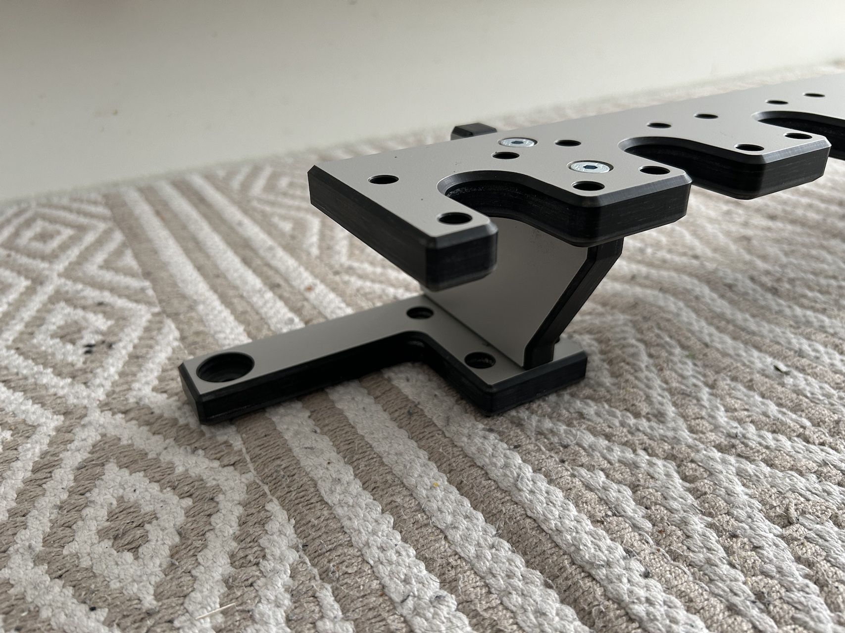 Détail de l'assemblage de la base avec les guidages linéaires.